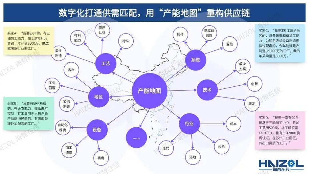 当能力被定义,就拥有了被理解、被信任、被推荐的前提。以东莞一家原本服务于通信行业的钣金工厂为例,加入平台后,通过数字标签精确描述其加工能力,被成功推荐给三家机器人企业,最终顺利实现行业跃迁。另一家同在东莞的机加工工厂在2020年后产值骤降40%,尽管其在航空航天和军工领域具备专业优势,但却不被外界所知晓,海智在线将其产能转化为数字标签后,该工厂成功与西安、长春、北京、浙江等地的10家军工与航空航天企业建立了稳固的合作关系。